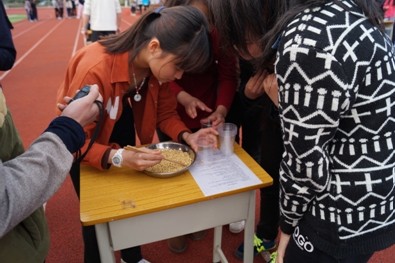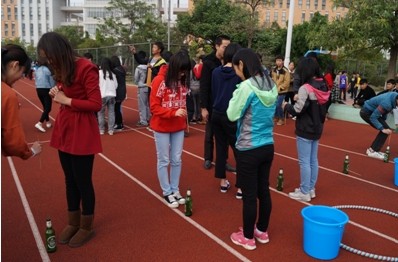 與傳統(tǒng)運(yùn)動會不同,趣味運(yùn)動會將競技與娛樂相結(jié)合,著重同學(xué)們的參與和合作,對培養(yǎng)團(tuán)隊合作精神有著明顯的幫助。運(yùn)動會設(shè)置了“穿針引線”、“呼啦接力”、“投筷子”、“四人五足”等比賽項(xiàng)目,要求女生們以宿舍為單位,五人一組參賽。據(jù)了解,從運(yùn)動會開始到結(jié)束,參賽的每一個運(yùn)動員、每一個團(tuán)隊都熱情高漲,加油聲、歡呼聲、笑語聲此起彼伏,回蕩在傍晚的操場。