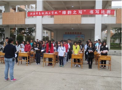 “希望是什么?悲觀者說,是地平線,就算看得道,也永遠走不到。樂觀者說,是啟明星,能告訴人們曙光就在前頭……”4月3日下午五點多,一陣朗朗的讀書聲在學(xué)校八號樓廣場響起,整齊而有力。原來,是“綠韻之寫”書寫決賽正在進行。馮艷丹、宋璐和吳玉云三位心理健康教師出席了活動。