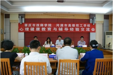 5月14日,肇慶技師學(xué)院副校長彭建新一行5人到我校進(jìn)行有關(guān)心理健康教育方面的經(jīng)驗(yàn)交流。學(xué)校副校長張海鋒、學(xué)生科科長黃志平、馮艷丹、宋璐、吳玉云等三位心理老師出席經(jīng)驗(yàn)交流會(huì)。