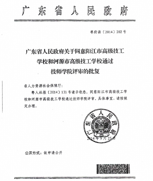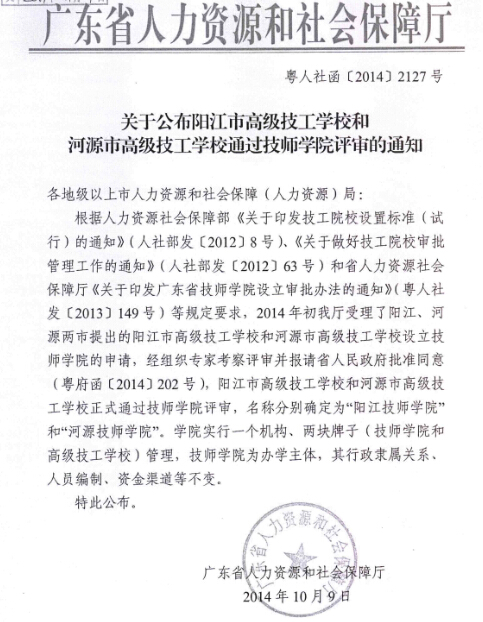 近日,我校申辦技師學(xué)院正式通過(guò)省人民政府、省人社廳批準(zhǔn),名稱(chēng)確定為“河源技師學(xué)院”,成為河源技工教育的最高學(xué)府。河源技師學(xué)院將更加側(cè)重于培養(yǎng)高級(jí)技師、技師、高級(jí)工等應(yīng)用型人才,為河源社會(huì)經(jīng)濟(jì)的發(fā)展提供強(qiáng)有力的智力和技術(shù)保障。