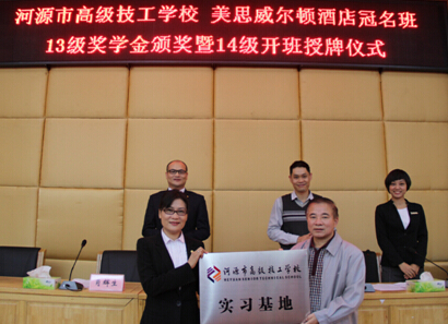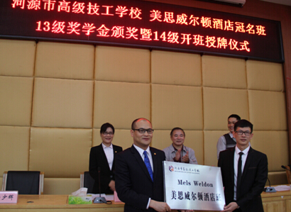 授牌儀式結(jié)束后,萬綠湖美思威爾頓酒店為我校2013級冠名班優(yōu)秀學(xué)生頒發(fā)獎學(xué)金,企業(yè)捐資助學(xué),校企攜手共進。