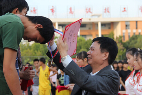 黎海波校長(zhǎng)親切為獲獎(jiǎng)選手頒獎(jiǎng)