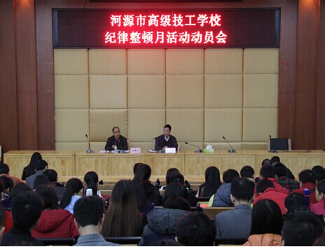 為切實加強我校紀律建設(shè),提高學(xué)生遵守紀律的意識,創(chuàng)建一個文明、安全、和諧的學(xué)習(xí)生活環(huán)境,12月15日,我校在培訓(xùn)樓講學(xué)廳召開了紀律整頓月活動動員大會。黎海波校長、劉俊侃副校長,學(xué)生科、團委、教學(xué)部正副主任、全體班主任、生活指導(dǎo)老師、學(xué)校保安隊長參加了會議。