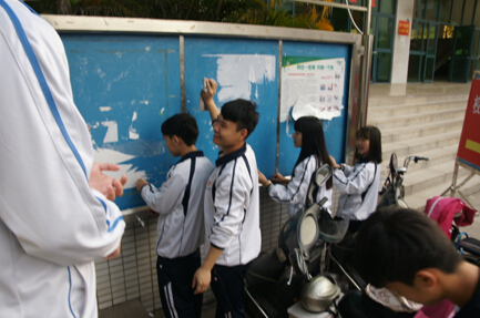 1月8日下午,我校校學生會干部在八號樓廣場集中,開展“清潔校園”公益活動。經(jīng)過學生會干部們的齊心協(xié)力,“牛皮癬”廣告消失了,校園環(huán)境恢復了往日的秀麗。