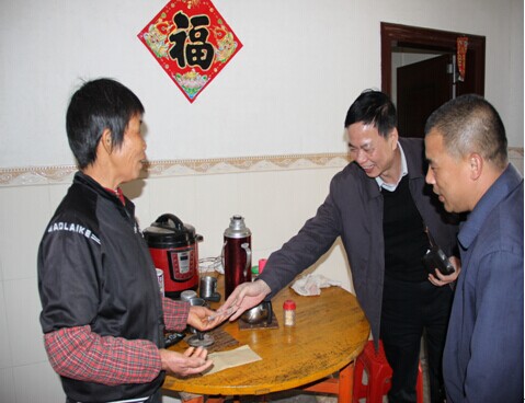 黎海波校長(zhǎng)了解到掛鉤貧困戶徐水運(yùn)已經(jīng)做了手術(shù),但是傷口化濃。黎海波校長(zhǎng)鼓勵(lì)他盡快把傷口醫(yī)好,并送上春節(jié)慰問金。