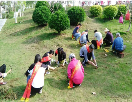 (圖三)我校同學(xué)在協(xié)助工人除草