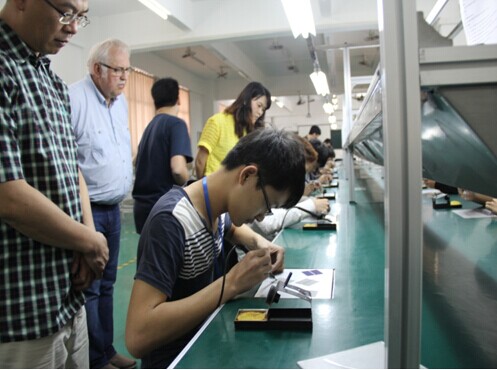 德國WL公司一行在梁秋生副院長的帶領(lǐng)下,實地參觀了我院太陽能光伏發(fā)電技術(shù)實訓(xùn)室、汽車實訓(xùn)室、數(shù)控加工中心等實訓(xùn)場所,梁秋生副院長向其詳細介紹了我院各實訓(xùn)室場所設(shè)備、校企合作辦學情況、學生學習成果作品等。德國教具專家Mr. Wiemann、Mr.Pollmer在認真參觀了各實訓(xùn)室和學生作品后,對我校優(yōu)美的校園環(huán)境、先進的實訓(xùn)設(shè)備、創(chuàng)新的學生作品大為贊賞,特別就校企合作如何開展、模具實訓(xùn)設(shè)備和成品展示進行了深入的探討和交流。