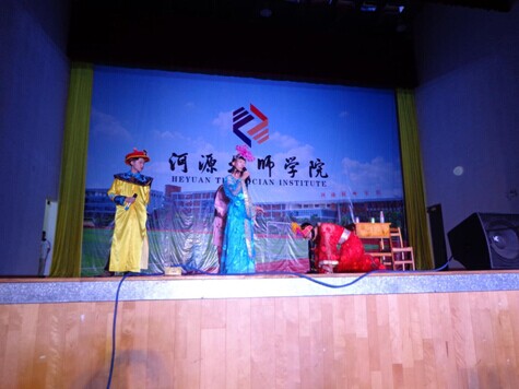晚會在對2014-2015學(xué)年度表現(xiàn)優(yōu)秀學(xué)生進行嘉獎中拉開序幕。13自動化高級2班同學(xué)表演的反串小品《甄嬛傳》將晚會推進一個小高潮,小品弘揚了真善美,有良好的教育性;相聲《好學(xué)生壞學(xué)生》以幽默風(fēng)趣的對話贏得現(xiàn)場師生熱烈掌聲,反映了當代學(xué)生的心理特征;歐陽潤樅老師一首《愛的呼喚》將晚會推入另一個高潮;特邀小嘉賓鐘洢賢為大家?guī)淼母枨缎氊悺芬齺黻囮嚭炔?;魔術(shù)師丘嘉華讓師生們見證了火焰奇跡,出神入化的表演使得臺下一片喝彩;歌曲《活著》讓大家明白生命的意義在于積極向上,努力進?。蛔詈笸頃跇逢牨硌葜新湎箩∧?。