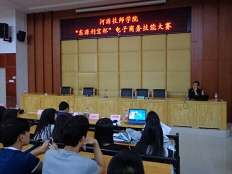 5月19日下午,我院信息技術(shù)系在實(shí)訓(xùn)樓講學(xué)廳舉辦了“東源利寶杯”電子商務(wù)技能大賽決賽。東源利寶實(shí)業(yè)有限公司副總經(jīng)理李偉東先生、視覺部游麗燕(我院12級電子商務(wù)專業(yè)優(yōu)秀畢業(yè)生),信息技術(shù)系朱少威主任、電子商務(wù)專業(yè)所有老師及13、14級電子商務(wù)專業(yè)350名學(xué)生參加了這次“東源利寶杯”電子商務(wù)技能大賽決賽。