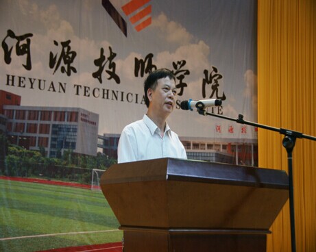 市委組織部副部長(zhǎng)、市人力資源和社會(huì)保障局局長(zhǎng)蘇暉同志宣布河源技師學(xué)院第八屆技能節(jié)開幕。