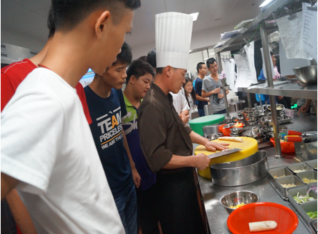 (圖八)烹飪專業(yè)學生觀摩希爾頓酒店中餐部廚房
