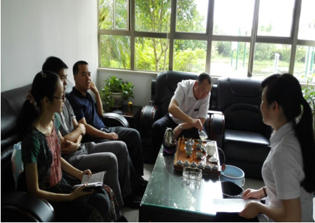 (圖一)歐海標(biāo)副科長(zhǎng)、鄒坤新副科長(zhǎng)等與河源麗日集團(tuán)的袁主任、陳主管在交流
