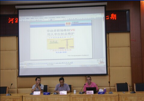 2013級(jí)學(xué)生即將頂崗實(shí)習(xí),開啟自己的職業(yè)生涯,從學(xué)生轉(zhuǎn)變成勞動(dòng)者。為幫助這批“未來(lái)勞動(dòng)者”在遭遇勞動(dòng)侵權(quán)時(shí),更好地保護(hù)自身權(quán)益,6月16日晚,我院在培訓(xùn)樓講學(xué)廳舉辦了“讓法律為職業(yè)生涯保駕護(hù)航”的就業(yè)大講壇系列專題講座。講座特別邀請(qǐng)中華律師協(xié)會(huì)會(huì)員、中國(guó)勞動(dòng)法服務(wù)平臺(tái)河源站站長(zhǎng)鄒光彬律師為主講嘉賓,由招生就業(yè)科邱志才科長(zhǎng)主持。13級(jí)各班學(xué)生代表聆聽(tīng)了講座。