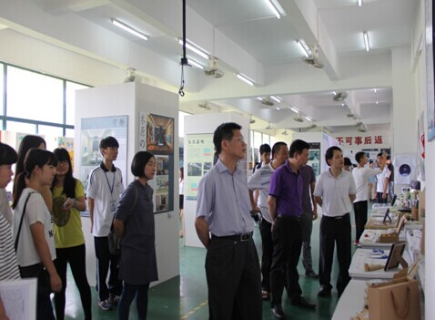 (圖一)蘇暉局長(zhǎng)、張文勝副局長(zhǎng)參觀藝術(shù)設(shè)計(jì)畢業(yè)作品展