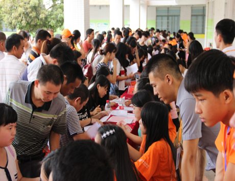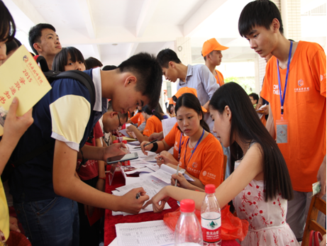 早晨7時(shí),新生接待點(diǎn)的工作人員已經(jīng)準(zhǔn)備就緒,正投入忙碌的迎新工作中。不一會(huì)兒,從四面八方趕來的3000余名新生和家長,將學(xué)校新生接待點(diǎn)團(tuán)團(tuán)圍住,場面十分火爆!