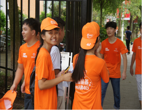 “歡迎來到河源技師學(xué)院”,“叔叔、阿姨這邊走”,“我來幫您拿行李”……一群身穿橙色上衣,肩挎紅色綢帶的志愿者們十分顯眼。他們熱情服務(wù),分布在校園的各個(gè)角落,用最真摯的微笑和實(shí)在的行動(dòng)為新生提供周到而貼心的服務(wù)。