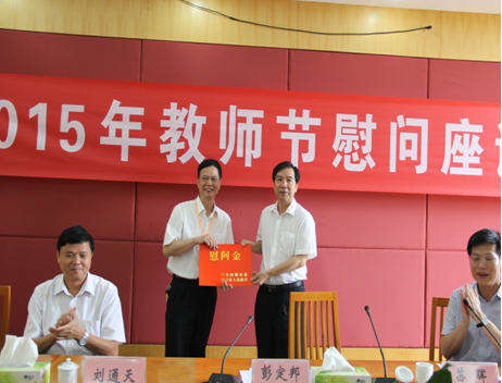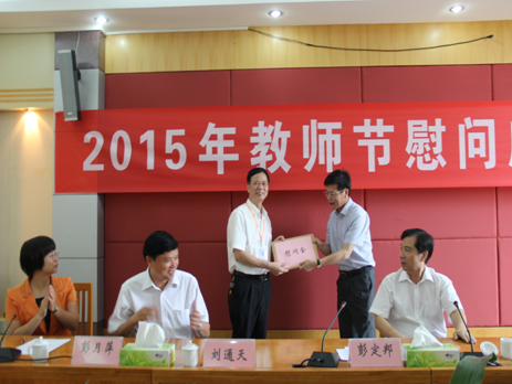在我國第31個教師節(jié)即將到來之際,市政府常務(wù)副市長彭定邦率隊到我院為全體教職工致以節(jié)日的慰問。參加教師節(jié)慰問座談會的領(lǐng)導(dǎo)還有市委組織部副部長、市人力資源和社會保障局局長蘇暉同志,市地方稅務(wù)局局長劉通天同志,市紀(jì)委派駐市地方稅務(wù)局紀(jì)檢組長刁振光同志,市紀(jì)委派駐市教育局紀(jì)檢組長彭月萍同志。