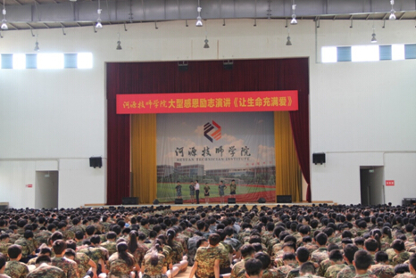 9月8日,我院組織的“讓生命充滿愛”大型勵(lì)志演講在學(xué)院體育館感動(dòng)開講。演講由中國時(shí)代之聲演講團(tuán)著名演講家王海童先生主講,2015級(jí)3000余名新生聆聽了這場(chǎng)演講。