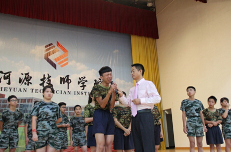 最后,王海童先生鼓勵(lì)同學(xué)們上臺(tái)表達(dá)自己的“愛”。同學(xué)們都勇敢地走上講臺(tái),大聲說出:“爸爸、媽媽,我愛你!” “外婆,雖然你走了,但是我很想你”“媽媽,我一定在校好好學(xué)習(xí),你不用擔(dān)心”……一聲聲扣人心扉的吶喊,讓學(xué)院沸騰了;一聲聲堅(jiān)定的承諾,讓新生們斗志昂揚(yáng)。相信, 2015級(jí)新生們必能在我院學(xué)習(xí)一技之長,找到屬于自己的天空!
