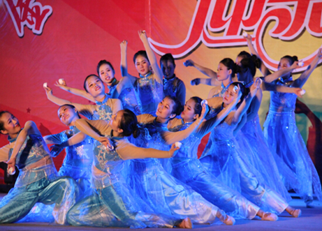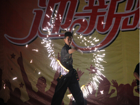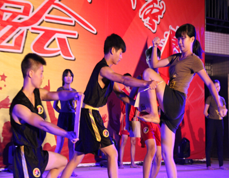 晚會(huì)以歡快的舞蹈表演《向快樂出發(fā)》開場,點(diǎn)燃現(xiàn)場氣氛,同學(xué)們歡呼聲、掌聲不斷。舞蹈《杯花聲聲》,演員們手拿杯子翩翩起舞;武術(shù)表演,演員舞動(dòng)雙節(jié)棍,火花四射;《霓裳之秀》由我院服裝專業(yè)學(xué)生自己設(shè)計(jì),自己表演;而在街舞表演《舞動(dòng)未來》中,演員動(dòng)感十足,展示了生機(jī)勃勃的青春氣息。值得一提的是,迎新晚會(huì)當(dāng)天剛好是我國第31個(gè)教師節(jié),舞臺(tái)上演員們傾情表演手語《感恩的心》,舞臺(tái)下同學(xué)們一起高聲吟唱,感動(dòng)校園。教官也為節(jié)日送上祝福,軍體拳真刀秀威風(fēng)凜凜;逗趣版《小蘋果》high翻全場。