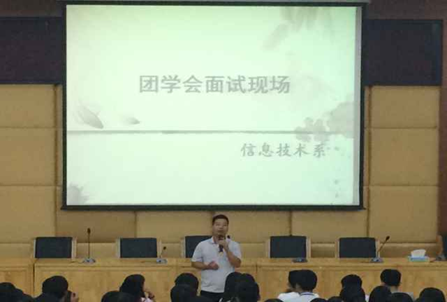 為壯實(shí)系團(tuán)總支學(xué)生會學(xué)生干部隊(duì)伍,為系部學(xué)生工作的順利開展增磚添瓦,9月22日晚,信息技術(shù)系在培訓(xùn)樓講學(xué)廳展開納新面試。