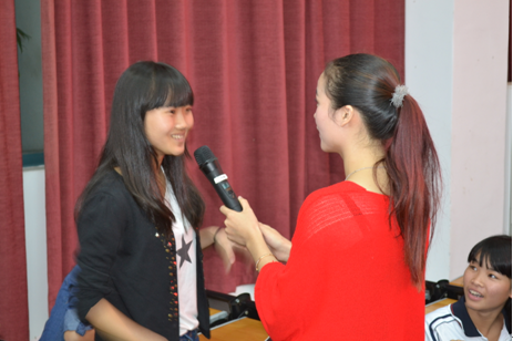 講座最后環(huán)節(jié)是現(xiàn)場互動問答,同學(xué)們積極踴躍地向這位大師姐提出各種問題。劉利娥同學(xué)樂于解答疑問,善于從自己成長的經(jīng)歷,專業(yè)導(dǎo)游的經(jīng)驗等角度,詳盡回答了各種問題。最后應(yīng)同學(xué)們的要求,以一首客家山歌圓滿結(jié)束講座。