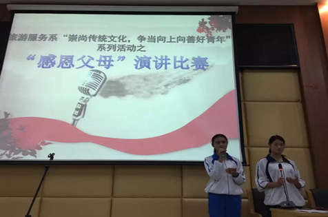為激發(fā)莘莘學子愛父母、感恩父母的思想情懷,進而形成一個尊重父母、講文明懂禮儀的文化氛圍,切實加強校園美德建設(shè),踐行“崇尚傳統(tǒng)文化,爭當向上向善青年”理念,旅游服務系于11月12日晚在我校培訓樓階梯教室舉辦了“感恩父母”演講比賽決賽。旅游服務系主任謝龍桂老師、副主任劉曉霞老師、系團總支書記曾曉君老師出席,學生代表300余人參加了此次活動。