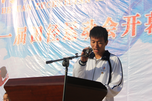 黎海波院長致開幕詞。他希望同學們能繼續(xù)發(fā)揚頑強拼搏的精神,弘揚技師學子良好的品格,展現(xiàn)技師學院的蓬勃生機,為學院第十一屆田徑運動會寫下歷史的新篇章!