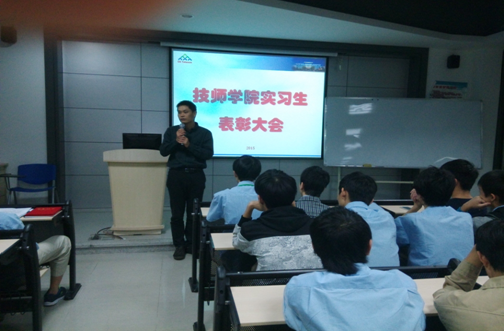 11月25日晚,我院2014級電子技術專業(yè)全體學生在“廠中?!保ㄎ骺赏ㄐ牛ê釉矗┯邢薰荆┡e行了實習表彰大會。教務科鄒坤新副科長、電氣應用系副主任鐘偉東、西可通信王經(jīng)理出席了大會。