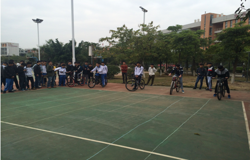為豐富同學(xué)們課余生活,展現(xiàn)青春風(fēng)采,豐富校園文化。學(xué)生A棟宿舍在籃球場(chǎng)舉辦了自行車慢速比賽活動(dòng),共80多位同學(xué)參加。
