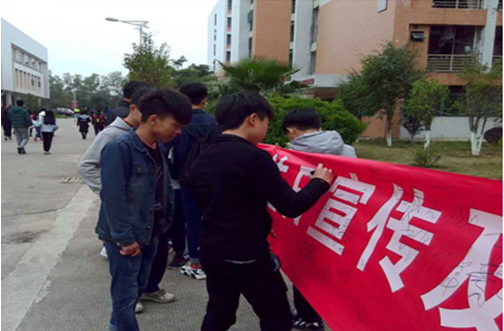 中午,法律協(xié)會(huì)負(fù)責(zé)人鐘濃輝帶領(lǐng)協(xié)會(huì)的成員們?cè)陲執(zhí)瞄T口設(shè)立宣傳點(diǎn),向過往同學(xué)發(fā)放宣傳資料和講解《消費(fèi)者權(quán)益保護(hù)法》、《侵害消費(fèi)者權(quán)益行為處罰辦法》以及防網(wǎng)絡(luò)詐騙等知識(shí),解答大家在消費(fèi)上遇到的疑難問題?;顒?dòng)還設(shè)置了橫幅讓同學(xué)們自主簽字,提高同學(xué)們誠(chéng)實(shí)守信的意識(shí)。