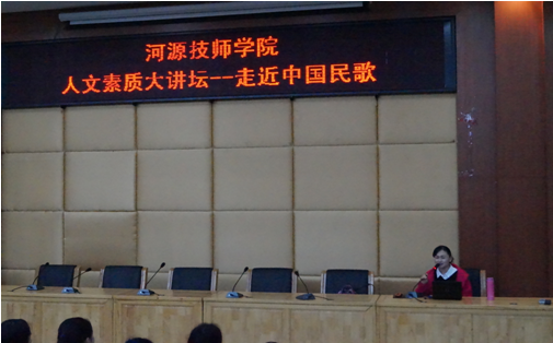 2016年3月21日晚,我院2015-2016學(xué)年第二學(xué)期“人文素質(zhì)大講壇”系列講座第一期——走近中國民歌在我院講學(xué)廳舉行。本次講座由旅游服務(wù)系李艷老師主講,旅游服務(wù)系2015級全體學(xué)生聆聽了講座。