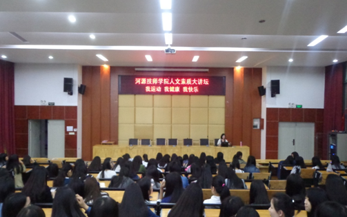2016年4月5日晚,由學(xué)生科主辦的人文素質(zhì)大講壇第三期“我運(yùn)動 我健康 我快樂”在培訓(xùn)樓講學(xué)廳舉行。本次講座由經(jīng)濟(jì)貿(mào)易系顏雪艷老師主講,經(jīng)濟(jì)貿(mào)易系2014級全體學(xué)生聆聽了此次講座。