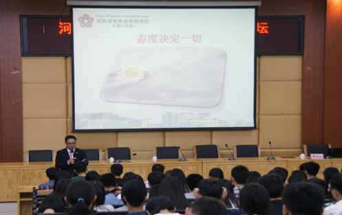 本次講座邀請了河源萬綠湖美思威爾頓酒店總經(jīng)理兼人力資源總監(jiān)譚同元先生主講。他非常重視這次講座,精心準(zhǔn)備了課件。他用精彩的寓言故事、直觀的數(shù)據(jù)分析圖、通俗易懂的語言讓同學(xué)們學(xué)習(xí)如何合理制定職業(yè)生涯規(guī)劃、了解人才及人才的核心競爭力。同時(shí)他不斷強(qiáng)調(diào)在職場中團(tuán)隊(duì)協(xié)作能力的重要性,希望同學(xué)們在校努力提升自己的綜合素養(yǎng),認(rèn)真學(xué)習(xí)技能,為就業(yè)“充電”。