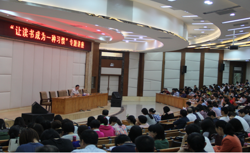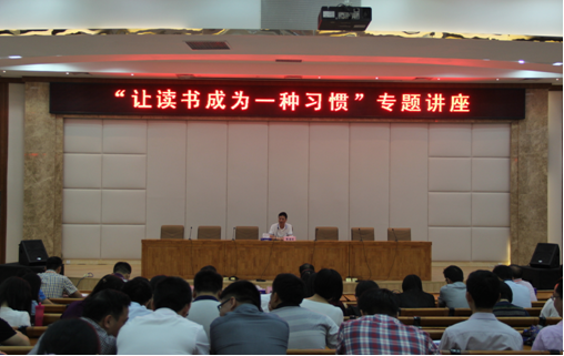 為豐富我院教職工“8小時(shí)以外”的生活,提高教職工讀書的積極性,2016年4月21日下午,我院在圖書館報(bào)告廳舉辦“讓讀書成為一種習(xí)慣”專題講座。講座由我院黎海波院長(zhǎng)主講,梁秋生副院長(zhǎng)主持。全體教職工聆聽(tīng)了講座。