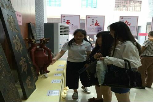 此次活動由太平古街和鴻志中基客家文化博物館共同舉辦,在客家文物展廳展出了雞公碗、禮盒、手提箱、壽牌、陶器、客家第一福等客家文物。我院2015級導(dǎo)游專業(yè)李飛鴻、朱遷妮、黎小潔和黃小鵬4名學(xué)生作為客家文物展的義務(wù)講解員,為前來參觀的廣大游客講解了客家文物的歷史與文化,詳細而耐心地解答游客的疑問。他們認真的態(tài)度和專業(yè)的講解贏得客家文化博物館館長和游客的高度認可,被贊具有客家人吃苦耐勞的優(yōu)秀品質(zhì)。