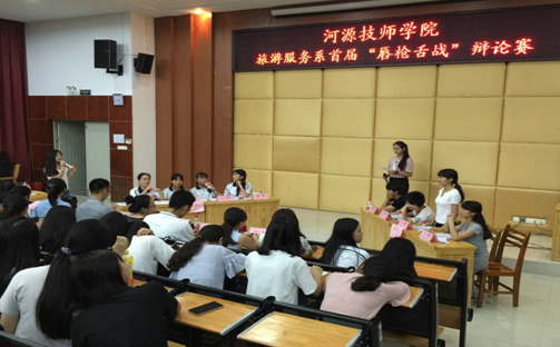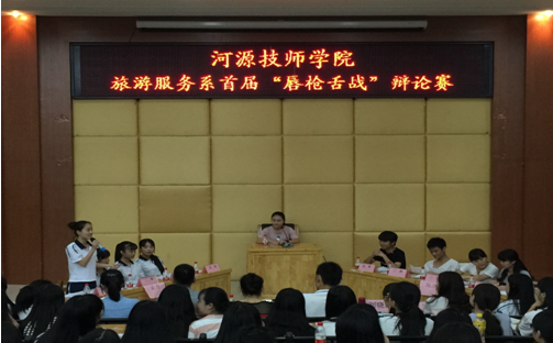 2016年6月2日晚,我院旅游服務(wù)系團(tuán)學(xué)會(huì)在講學(xué)廳舉辦了首屆“唇槍舌戰(zhàn)”辯論賽總決賽。旅游服務(wù)系主任謝龍桂老師、副主任劉曉霞老師、副主任羅丹老師、團(tuán)總支書記曾曉君老師,公共教育系張明塘老師、吳冰老師出席,旅游服務(wù)系2015級(jí)全體學(xué)生共300余人觀看。