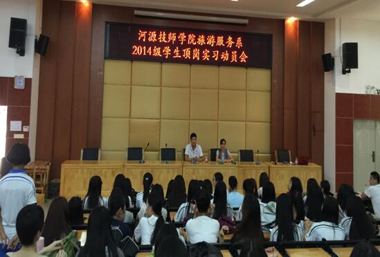 為了進(jìn)一步完善旅游服務(wù)系2014級學(xué)生頂崗實(shí)習(xí)和就業(yè)工作,引導(dǎo)學(xué)生積極完成頂崗實(shí)習(xí)。6月13日下午,旅游服務(wù)系在講學(xué)廳舉行了2014級學(xué)生頂崗實(shí)習(xí)動員會。會議由旅游服務(wù)系主任謝龍桂和副主任劉曉霞主講,2014級全體班主任及學(xué)生參加。