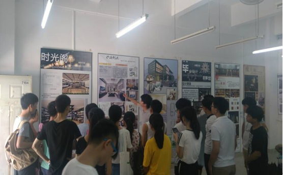 展示區(qū)現(xiàn)場,專業(yè)老師還在現(xiàn)場為前來參觀的師生們講解作品創(chuàng)作的靈感、理念和具體改造,形象而生動地展示了廣告與室內(nèi)專業(yè)設(shè)計的獨特魅力。