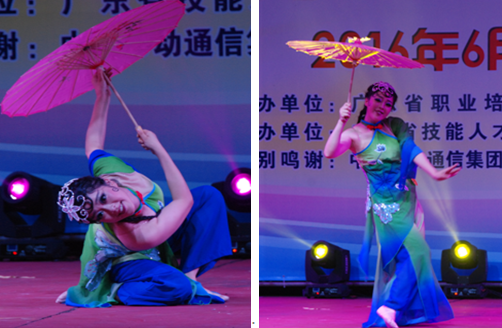 據(jù)悉,此次比賽共有來自珠三角片區(qū)和粵東片區(qū)的27個(gè)代表隊(duì)參加。我院翟文老師以舞蹈《羽化靈蛇》亮相,一身綠衣,一把油紙傘,宛如一條青蛇扭動(dòng)著身軀,訴說著生命的靈氣與奧秘。最終,翟文老師憑著扎實(shí)的基本功和活靈活現(xiàn)的演繹,贏得評(píng)委和觀眾的一致好評(píng),榮獲第一名的好成績(jī)。