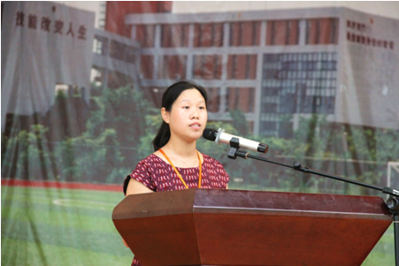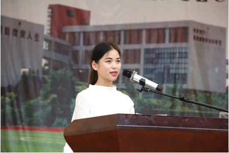 河源市槎城旅行社古美琪女士、原我院2013屆畢業(yè)生作為企業(yè)代表發(fā)言,她以自己的親身經(jīng)歷告誡同學(xué)們,企業(yè)需要的是要熱愛自己的職業(yè)、要有強(qiáng)烈進(jìn)取心和積極主動(dòng)工作的職員,祝愿師弟師妹們今后大展宏圖、前程錦繡。