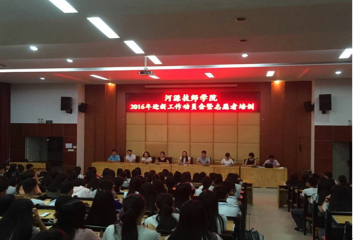 為保證迎新工作順利開展,2016年9月5日晚,我院團(tuán)委在培訓(xùn)樓講學(xué)廳舉行迎新志愿者培訓(xùn)活動(dòng)。院團(tuán)委書記駱曉紅、院團(tuán)委副書記楊科、各教學(xué)系部團(tuán)總支書記以及400多名新生志愿者參加了培訓(xùn)。