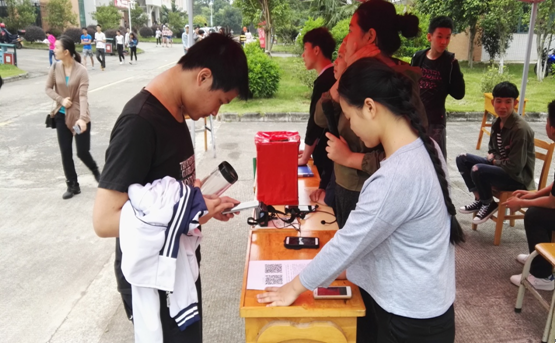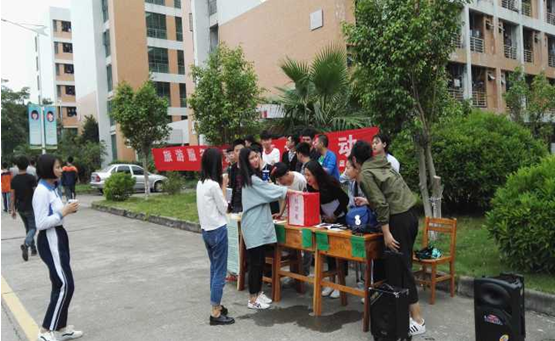 當(dāng)天下午,細(xì)雨蒙蒙,旅游服務(wù)系團(tuán)學(xué)會成員熱情不減,布置現(xiàn)場、派傳單、呼吁來往師生獻(xiàn)出愛心,還鼓勵大家轉(zhuǎn)發(fā)微信,以朋友圈輻射帶動社會熱心人士為黎小潔同學(xué)母親伸出援手。