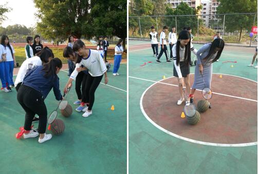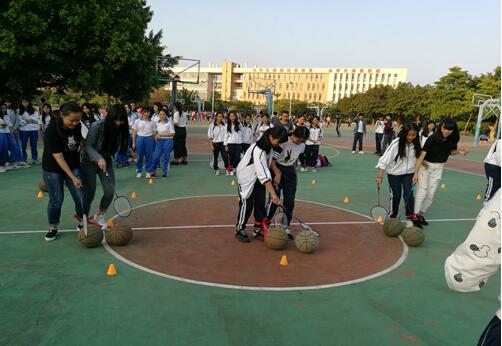 活動開始前,生活指導老師現(xiàn)身示范,特別強調了注意事項和細節(jié)。接著,學生按照兩人一組、六人一隊進行PK,各小隊需通過接力的方式,每隊所用時長最少為獲勝方。瞧,同學們都露出了燦爛的笑容,接力的那一刻,有條不紊地交接著自己手上的拍子。