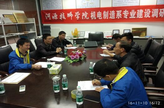 為做好機電制造系模具制造、數(shù)控加工技術、機電一體化專業(yè)對接企業(yè)的人才培養(yǎng)方案、頂崗實習管理、就業(yè)安排等方面工作,2016年11月10日至18日,機電制造系龍衛(wèi)軍主任、劉會平副主任、黃志平副主任,模具制造、數(shù)控加工技術、機電一體化專業(yè)的教研組長和專業(yè)老師一行10人,分組到河源富馬硬質(zhì)合金股份有限公司、廣州金霸(河源)建材有限公司、農(nóng)夫山泉股份有限(河源)公司、長江家具(河源)有限公司、河源雅達電子有限公司等企業(yè)開展專題調(diào)研工作。