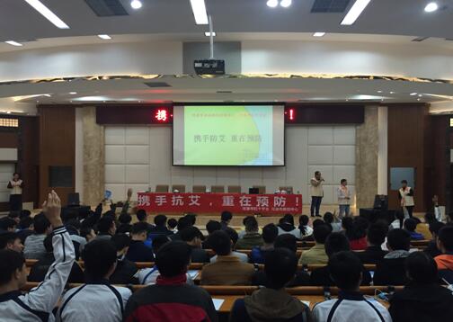 為提高學(xué)院師生對艾滋病的認(rèn)識,普及預(yù)防艾滋病的知識,2016年11月28日晚,我院誠邀河源市紅十字會聯(lián)合河源市疾病預(yù)防控制中心到我院開展主題為“攜手抗艾·重在預(yù)防”的預(yù)防艾滋病宣傳教育講座。主講人為河源市紅十字會志愿者李勝軍,學(xué)院師生近500人聆聽了講座。