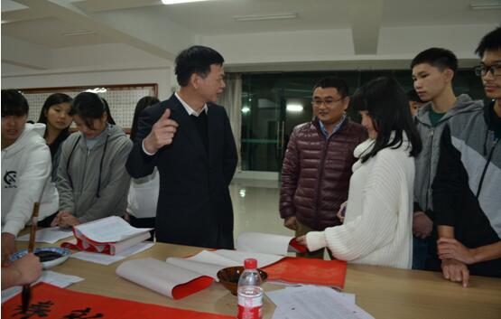 黎海波院長稱贊藍(lán)韻書畫社和圖書館讀書協(xié)會在活動中的努力和付出。他表示,每年的“免費(fèi)寫春聯(lián)、贈春聯(lián)”是學(xué)院的特色活動之一,希望同學(xué)們透過活動了解“春聯(lián)”,傳承“寫春聯(lián)”的傳統(tǒng)習(xí)俗。