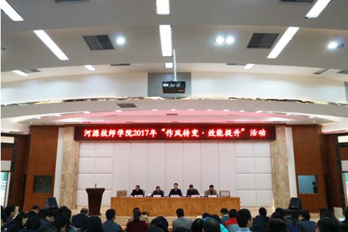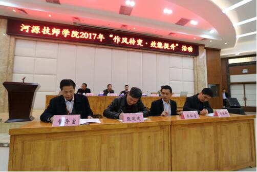 根據(jù)市人社局印發(fā)的《河源市人力資源和社會(huì)保障局關(guān)于開展2017年機(jī)關(guān)作風(fēng)轉(zhuǎn)變效能提升活動(dòng)的實(shí)施方案》文件精神,為切實(shí)轉(zhuǎn)變工作作風(fēng),提高服務(wù)水平和質(zhì)量,2017年3月7日下午,我院在圖書館報(bào)告廳開展2017年“作風(fēng)轉(zhuǎn)變•效能提升”活動(dòng)?;顒?dòng)由張運(yùn)達(dá)副院長(zhǎng)主持,全體教職工參加。