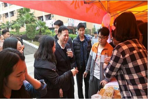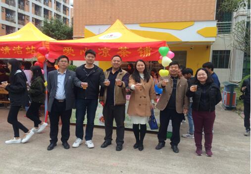 (圖二)校團(tuán)委駱曉紅書記、楊科副書記以及各系團(tuán)總支書記在愛心涼茶鋪
