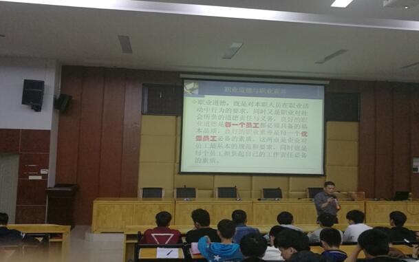 講座在熱烈的氣氛中拉開了序幕,電氣應(yīng)用系學(xué)管副主任谷瑞光跟同學(xué)們探討了兩個(gè)問題:同學(xué)們來學(xué)校想學(xué)什么?企業(yè)需要什么樣的人?他強(qiáng)調(diào),同學(xué)們一定要改變在學(xué)?;烊兆拥腻e(cuò)誤想法。他以自己的親身經(jīng)歷循循善誘,結(jié)合牛根生的名言“有德有才,破格重用;有德無才,培養(yǎng)使用;有才無德,限制錄用;無德無才,堅(jiān)決不用”告誡學(xué)生要做一個(gè)有良好的品德的人,先從培養(yǎng)職業(yè)素養(yǎng)開始。